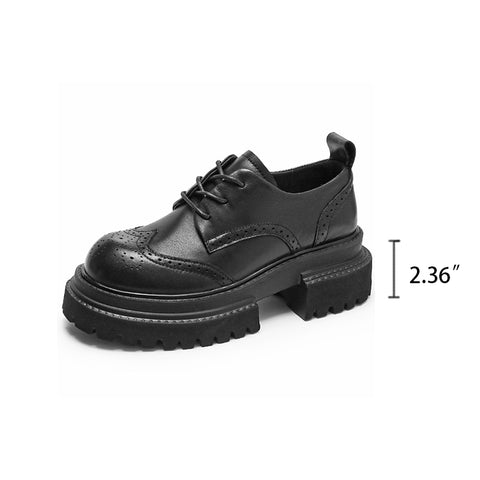 여성용 60mm 플랫폼 가죽 브로그 옥스포드 청키 윙팁 레이스 업 슈즈 브라운/블랙