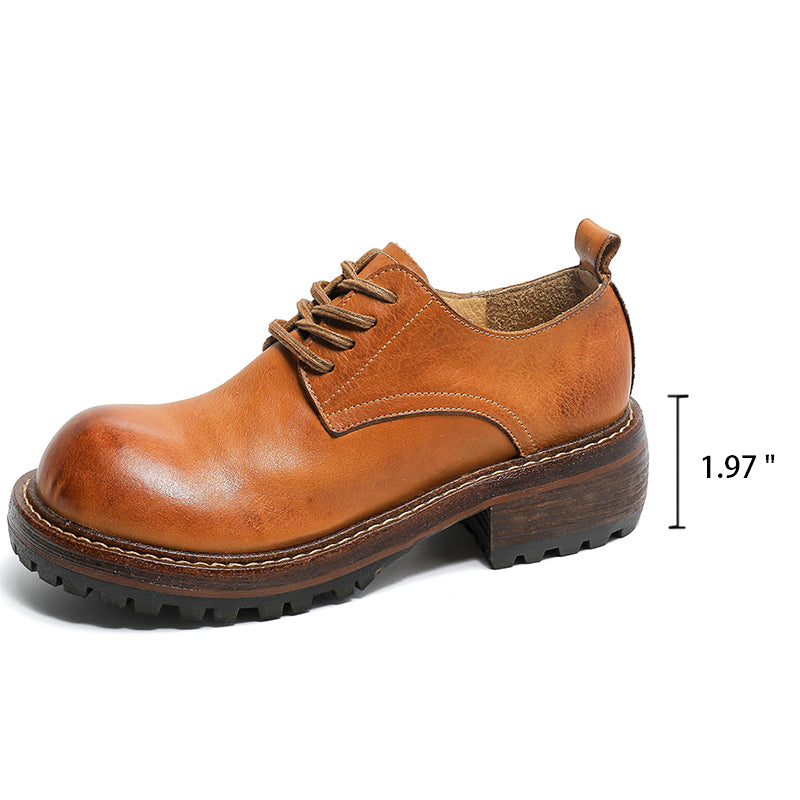 말 가죽 청키 옥스퍼드 여성용 라운드 토 더비 슈즈 브라운/커피/베이지 색상