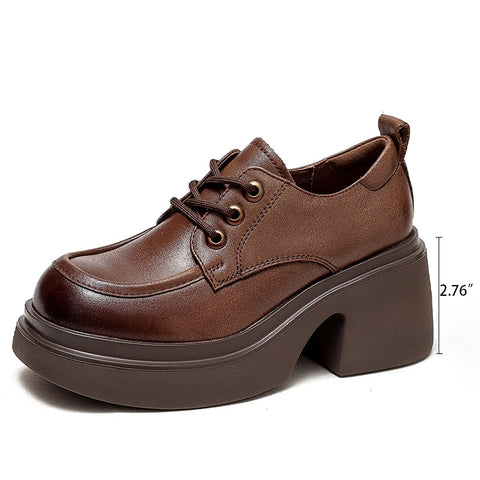 라운드 발가락 70mm 블록 힐 옥스포드 슈즈 레트로 레이스 업 가죽 슈즈 블랙/브라운