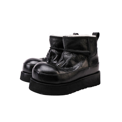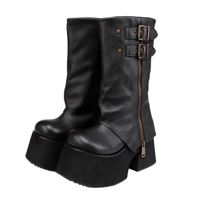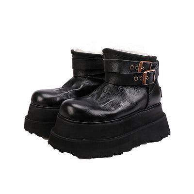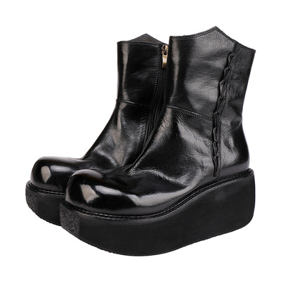 여성용 레트로 부츠 블랙 가죽 플랫폼 부츠