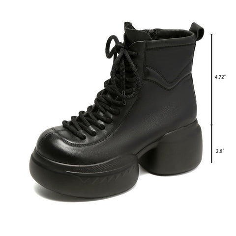 65mm 플랫폼 부츠 레이스업 가죽 마틴 부츠 커피/블랙 핸드메이드 전투 부츠