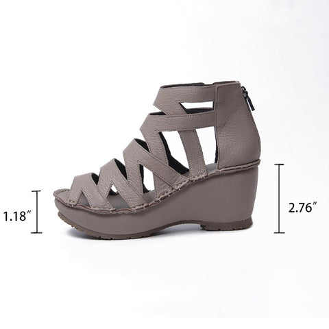 핸드메이드 가죽 글래디에이터 샌들 레트로 핍 토 웨지 블랙/그레이