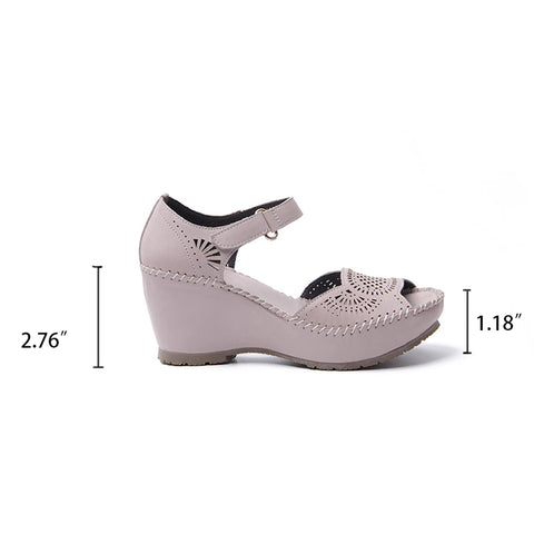 핸드메이드 가죽 웨지 샌들 발목 스트랩 천공된 어퍼 핍 토(블랙/핑크)