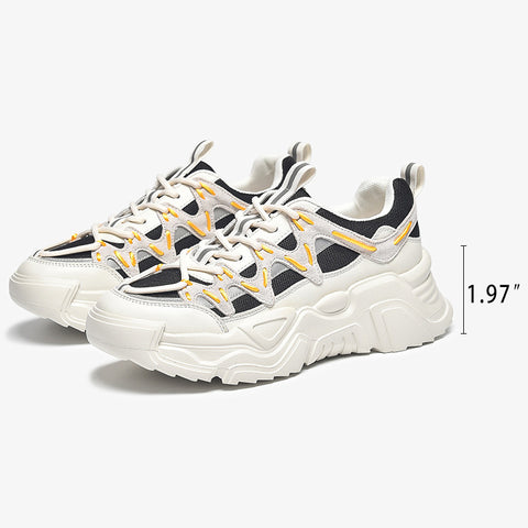 대조적인 어퍼, 라운드 토, 앞면 레이스업 잠금장치. 유연한 가죽과 메쉬의 조합으로 중국에서 제작되었으며 패션에 맞는 두툼한 Pu 밑창에 착화되어 있습니다. 편안한 걷기, 모든 종류의 발에 적합