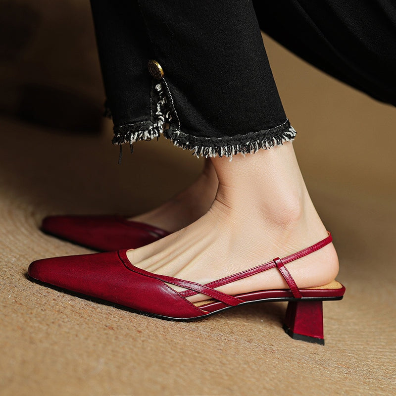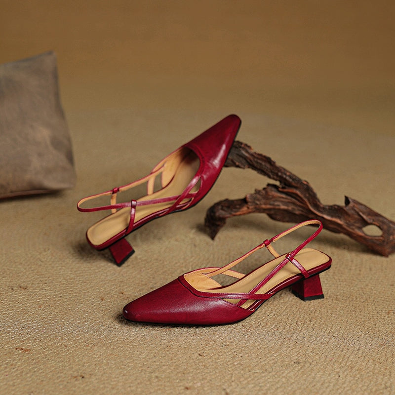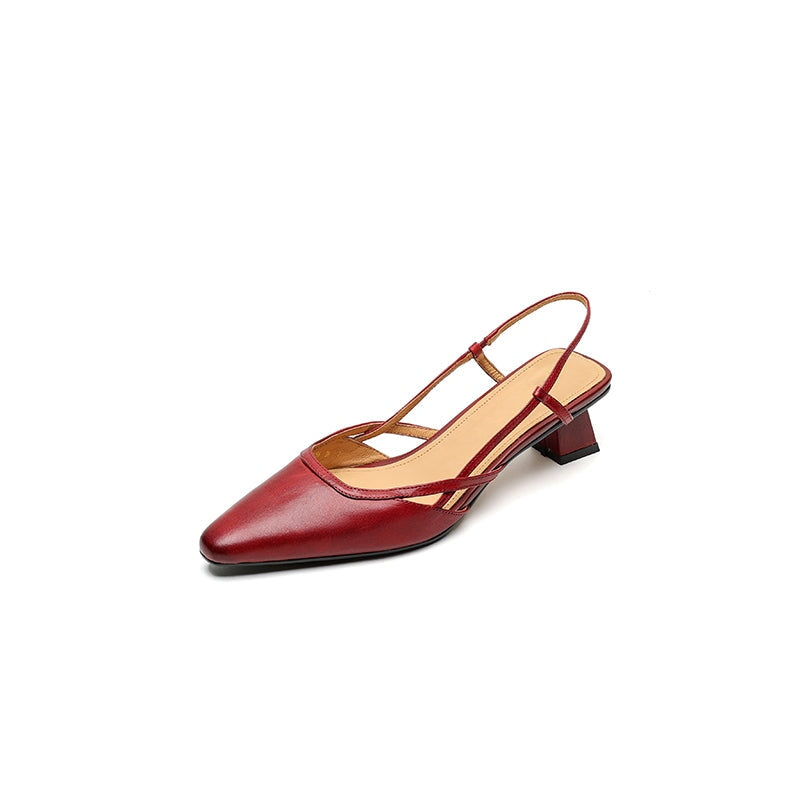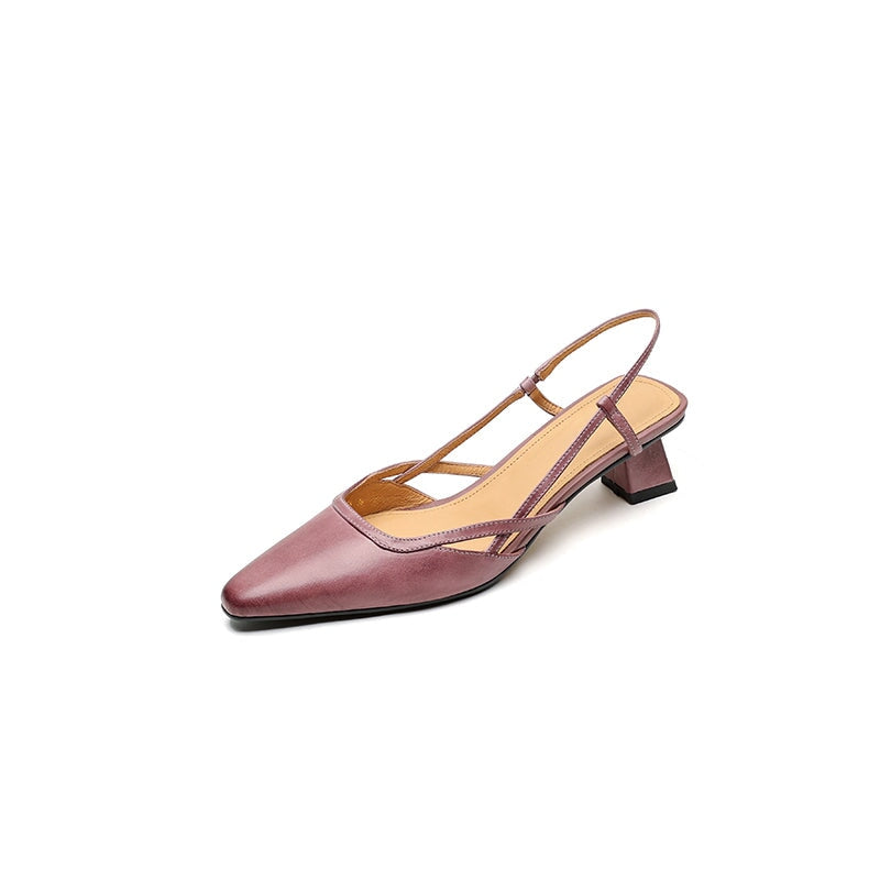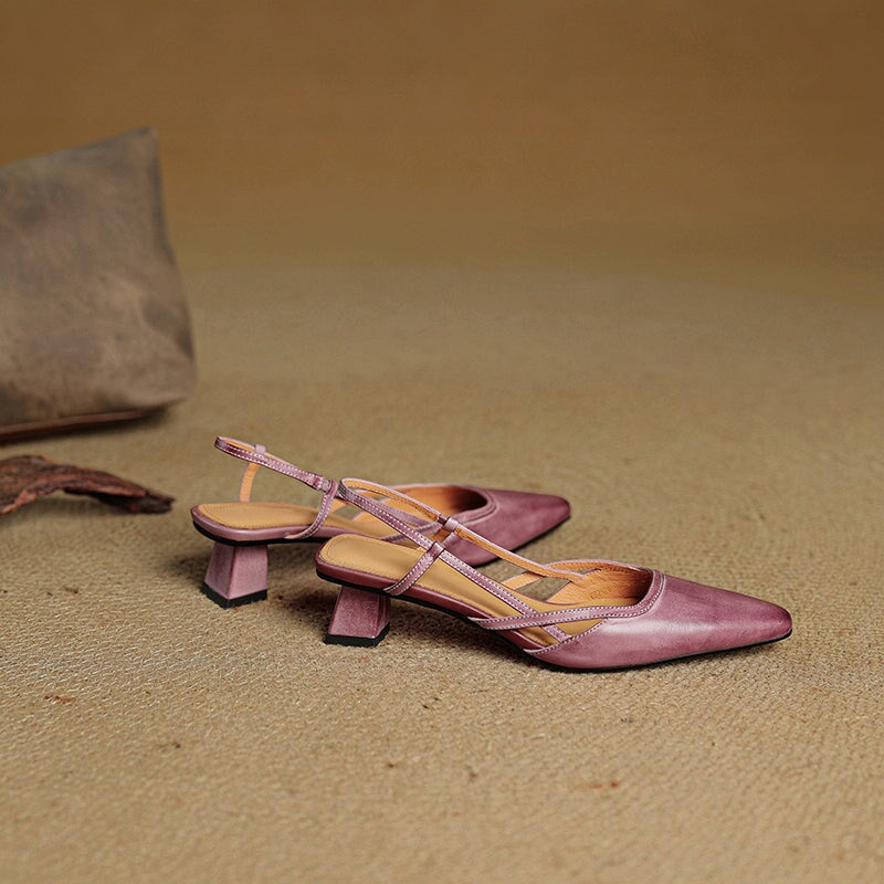Elegant Almond Toe Slingback Pumps Summer Closed-Toe Leather Sandals in Apricot/Purple/Wine Red