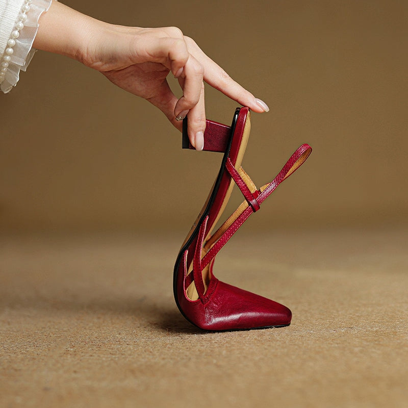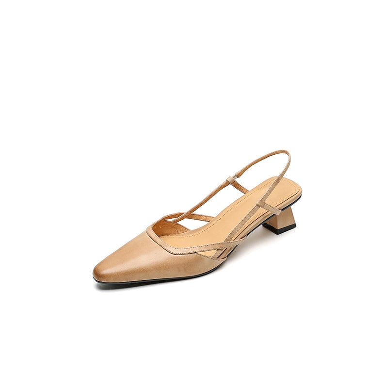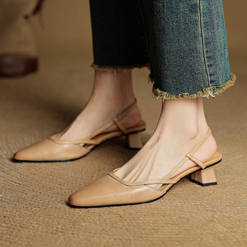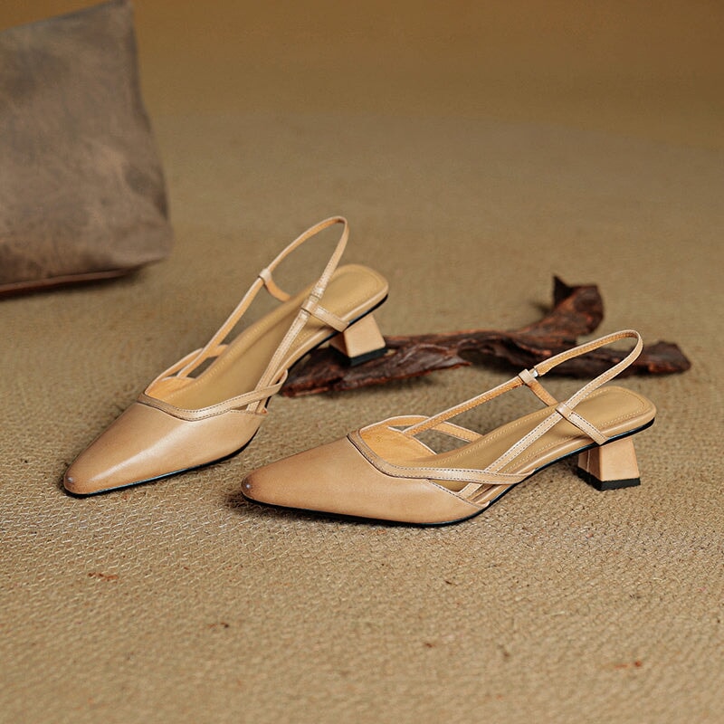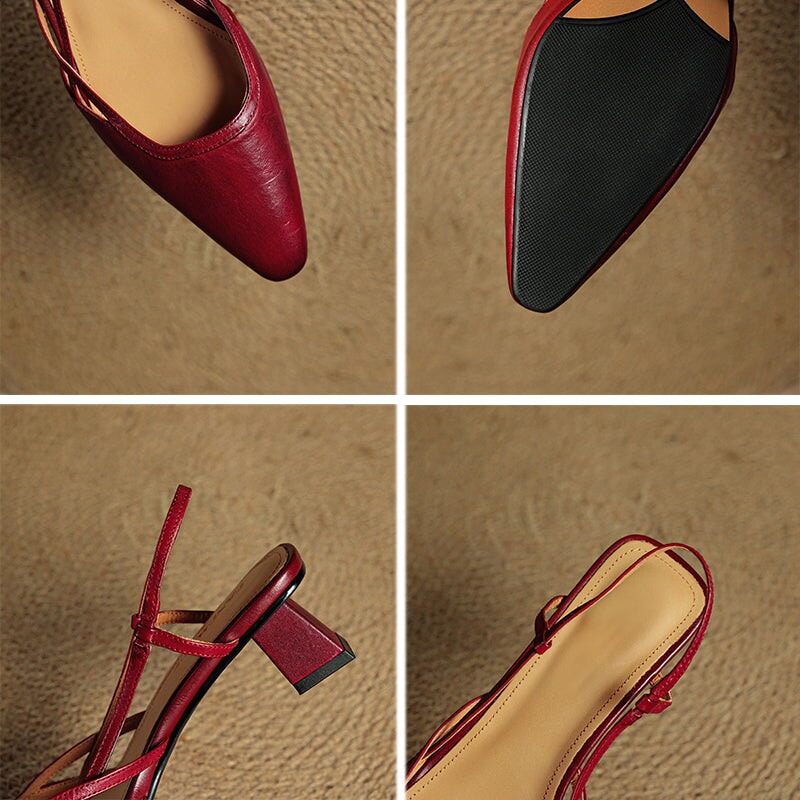 Elegant Almond Toe Slingback Pumps Summer Closed-Toe Leather Sandals in Apricot/Purple/Wine Red