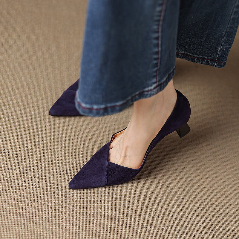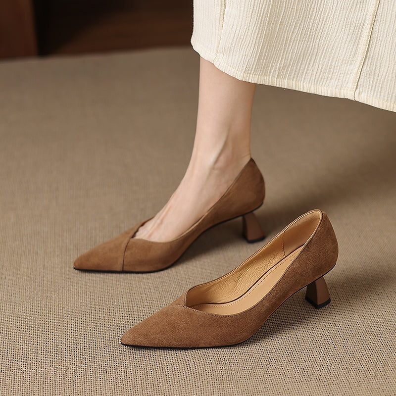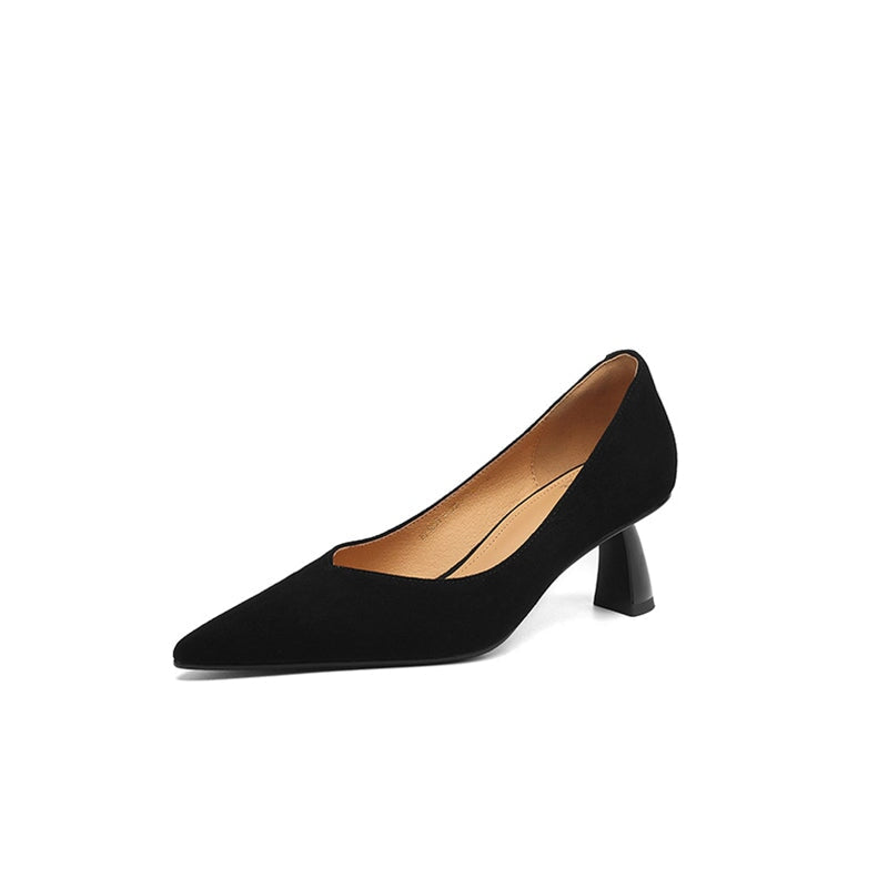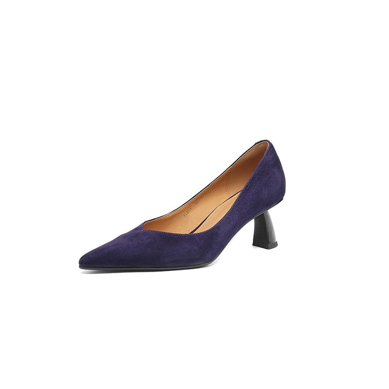 송아지 가죽 스퀘어 토 블록 힐 슬립온 펌프스 오피스 슈즈 베이지/블랙/누드/그레이