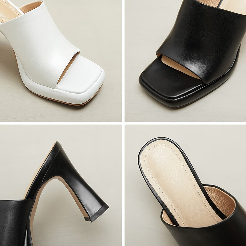Minimalist Open Toe Backless Slippers for Women 80mm Leather Summer Pumps in White/Black/Green