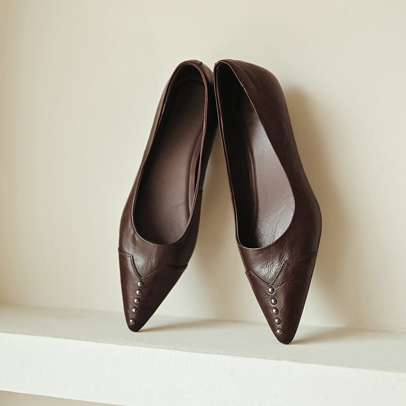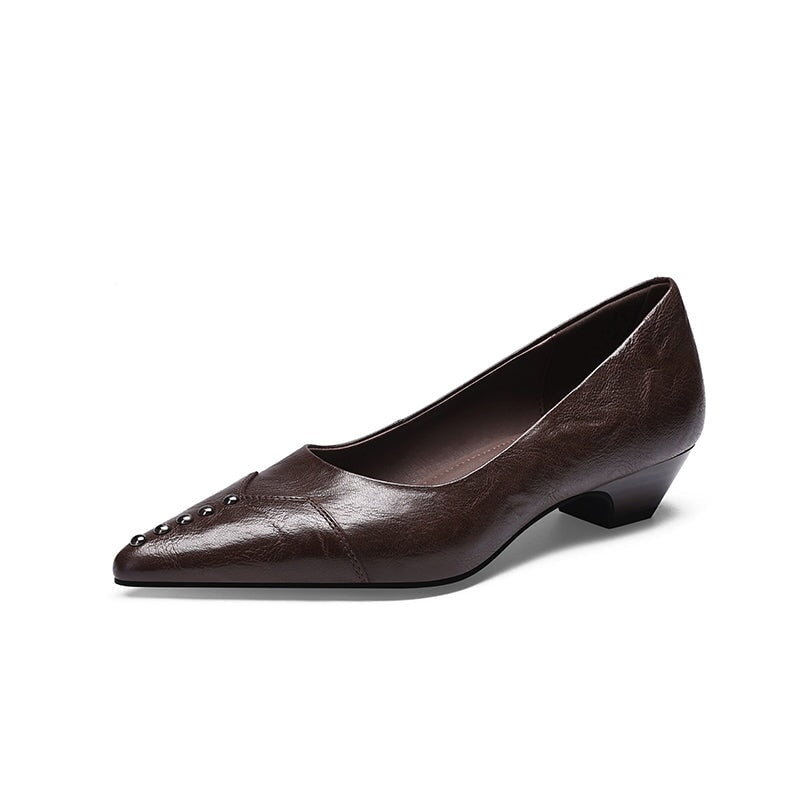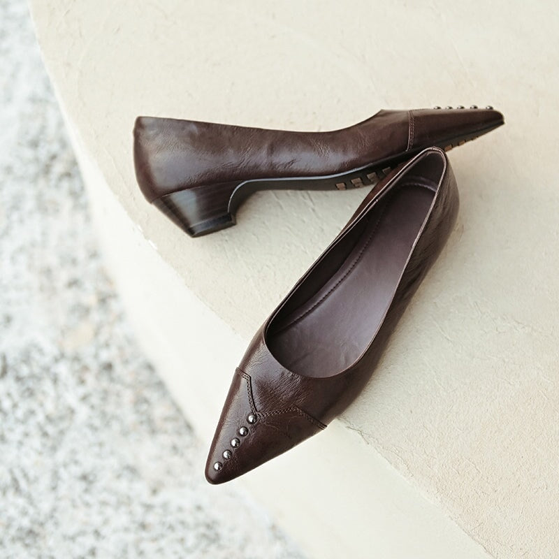 수제 가죽 펌프스 미드 힐 메리 제인 샌들 여성용 뾰족한 발가락 복고풍 샌들 그레이