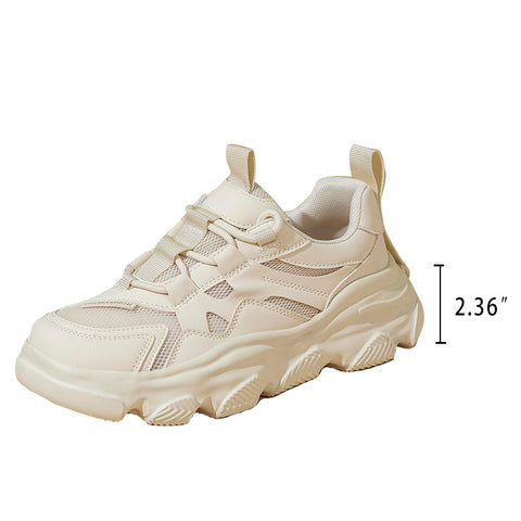 유연한 가죽과 메쉬를 조합하여 중국산으로 제작되었으며, 두툼한 패션 밑창이 특징입니다. 앞면 레이스업, 가볍고 편안한 걷기.
