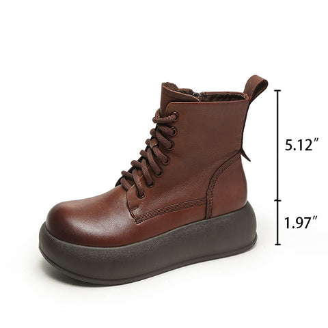 50mm 플랫폼 부츠 레이스업 가죽 마틴 부츠 커피/블랙 핸드메이드 전투 부츠