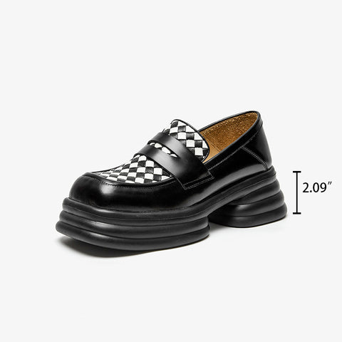 화이트/블랙/래티스 여성용 핸드메이드 가죽 플랫폼 페니 로퍼
