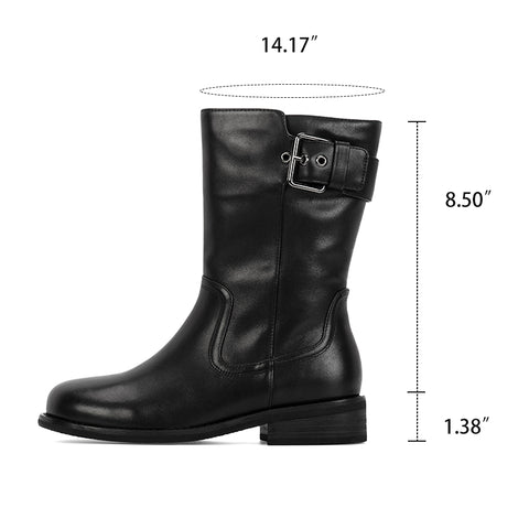 추운 겨울 클래식 마틴 부츠를 위한 여성용 레트로 가죽 중반 송아지 부츠 블랙 짧은 플러시 안감