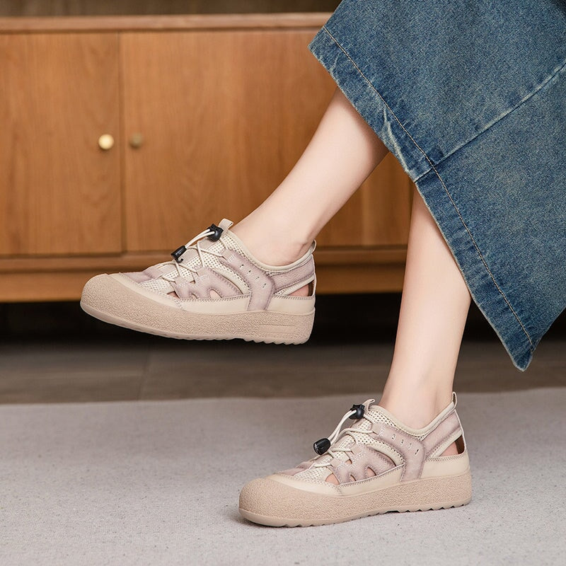 Step into breathable comfort with these stylish hollow-out sneakers for women. Designed with a soft cowhide leather and mesh upper, these shoes feature a round toe, lightweight rubber sole, and cushioned platform for all-day wear. Perfect for casual outings, travel, or everyday walking, these flat sneakers blend sporty style with a modern, laid-back vibe.