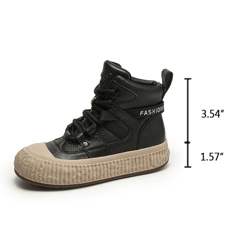베이지/블랙/브라운 여성용 하이탑 레이스업 40mm 가죽 플랫폼 스니커즈