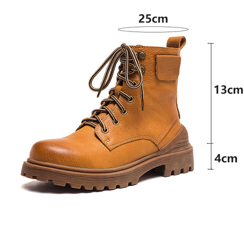 레트로 가죽 마틴 부츠 디자이너 레트로 청키 라이딩 부츠 짧은 봉제 수제 옐로우/블랙