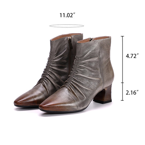 여성 사이드 지퍼 커피/그레이 핸드메이드 주름 부드러운 가죽 키티 힐 앵클 부츠