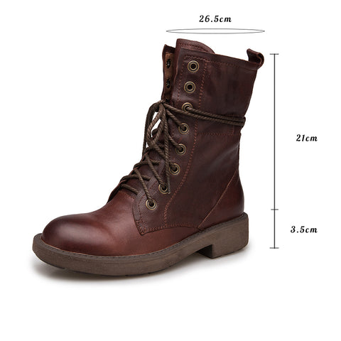 수제 양가죽 전투 부츠 디자이너 레트로 청키 라이딩 부츠 커피/다크 커피/블랙
