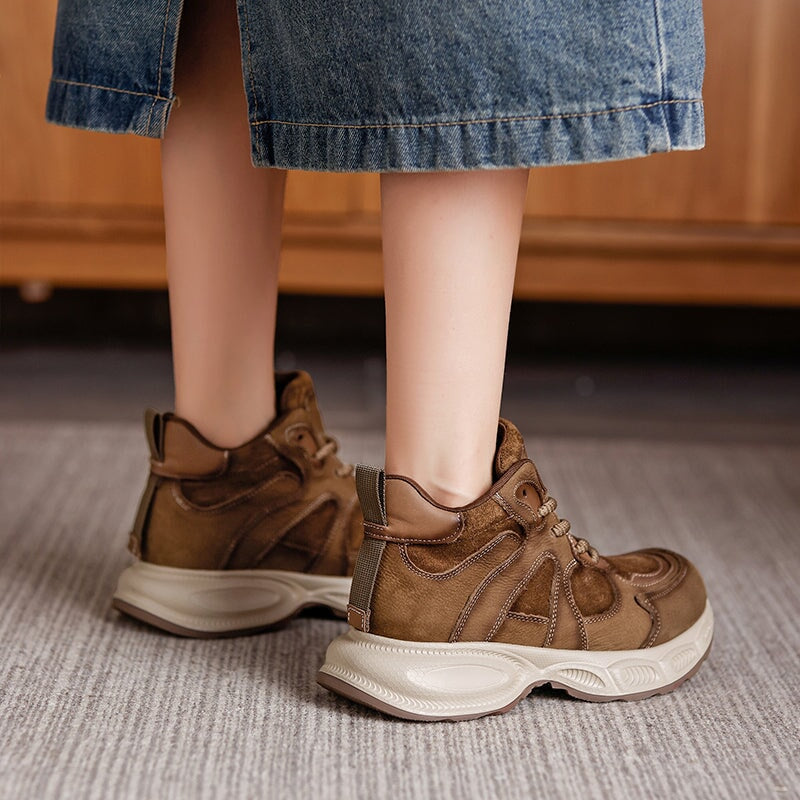 Dwarves Studio의 디자인, 40mm 플랫폼 밑창, 전면 레이스업 고정, 하이 탑, 라운드 토. 옷장에 완벽한 추가품. 독특하고 편안한 스니커즈. 부드럽고 편안하며 마모가 잘 되는 소가죽을 선택했습니다. 고무 밑창은 탄력성이 높고 부드러우며 미끄럼 방지 및 내마모성이 뛰어납니다.