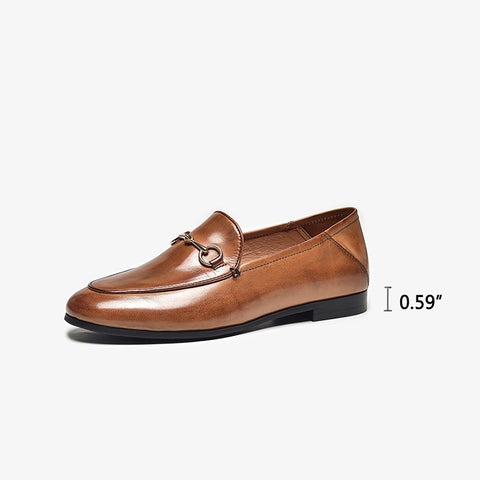 홀스빗 디테일 핸드메이드 가죽 송아지 가죽 여성용 블랙/브라운 로퍼
