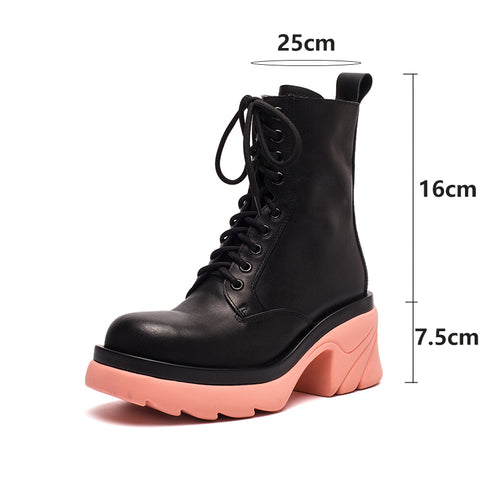 다채로운 단독 가죽 마틴 부츠 디자이너 레트로 청키 라이딩 부츠 수제 하이힐