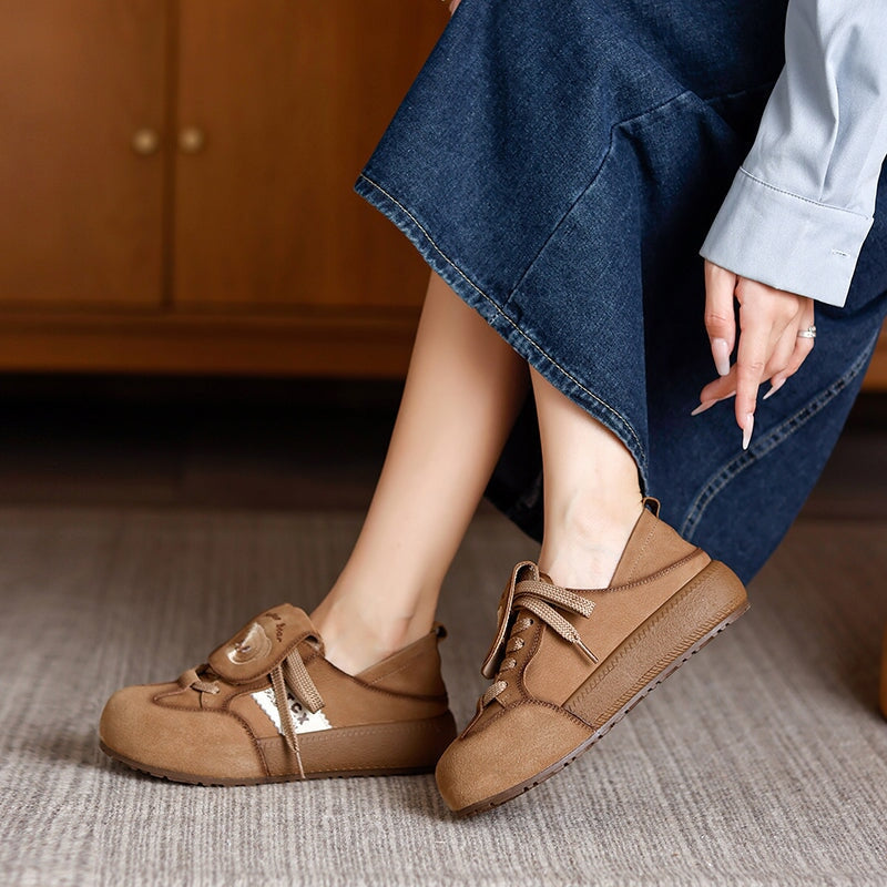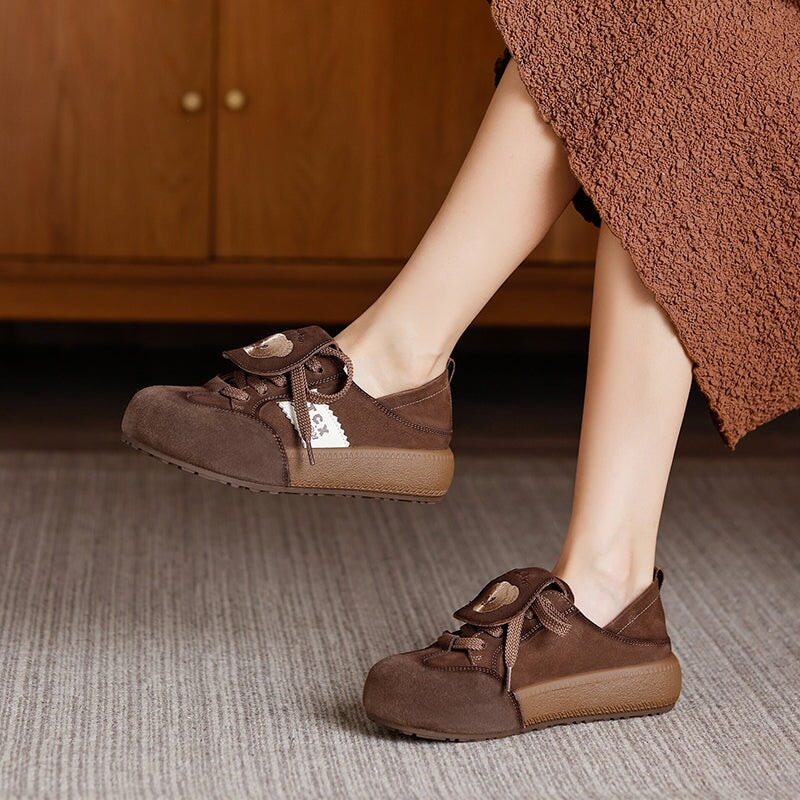 Crafted from premium full-grain cow leather, these shoes offer a soft and breathable feel for all-day comfort. The round-toe silhouette and flexible rubber sole provide excellent support and slip resistance, while the lace-up design adds a hint of retro campus charm. Featuring an adorable embroidered bear pattern, these Mori Girl style flat shoes bring a playful, vintage touch to your look. Perfect for everyday wear, they blend sweet aesthetics with durable craftsmanship.