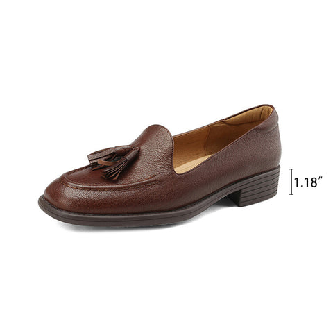 브라운/블랙 여성용 레트로 가죽 태슬 로퍼 스퀘어 토