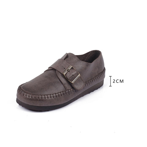 여성용 레트로 정품 가죽 소프트 플랫 라운드 발가락 버클 디자인 살구/커피