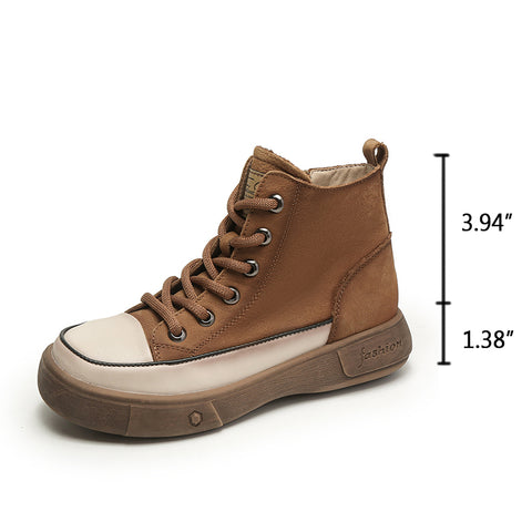 여성용 하이탑 레이스업 플랫 가죽 스니커즈 옐로우/카멜/커피 컬러