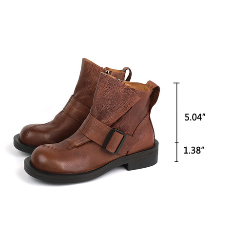 여성 핸드메이드 레트로 소프트 가죽 앵클 부츠 사이드 버클 블랙/브라운