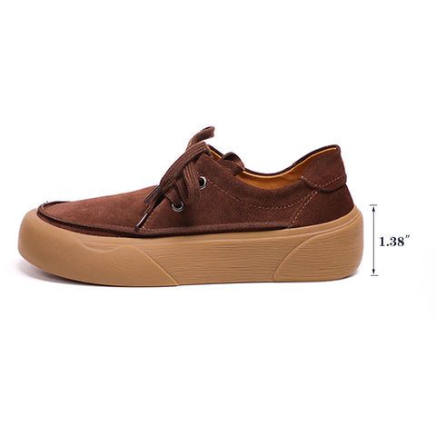 핸드메이드 부드러운 가죽 레이스업 플랫폼 옥스퍼드 슈즈 커피/그린