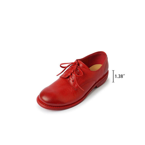 여성을 위한 레이스업 가죽 더비 슈즈 라운드 발가락 소프트 옥스포드 슈즈(레드/블랙/브라운/베이지)