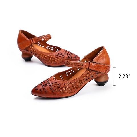 펌프스 여성 가죽 중공 청키 하이힐 포인티드 슈즈 커피/카멜