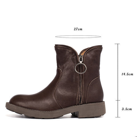 왁싱 양가죽 숏 부츠 디자이너 레트로 청키 앵클 부츠 다크 커피/블랙