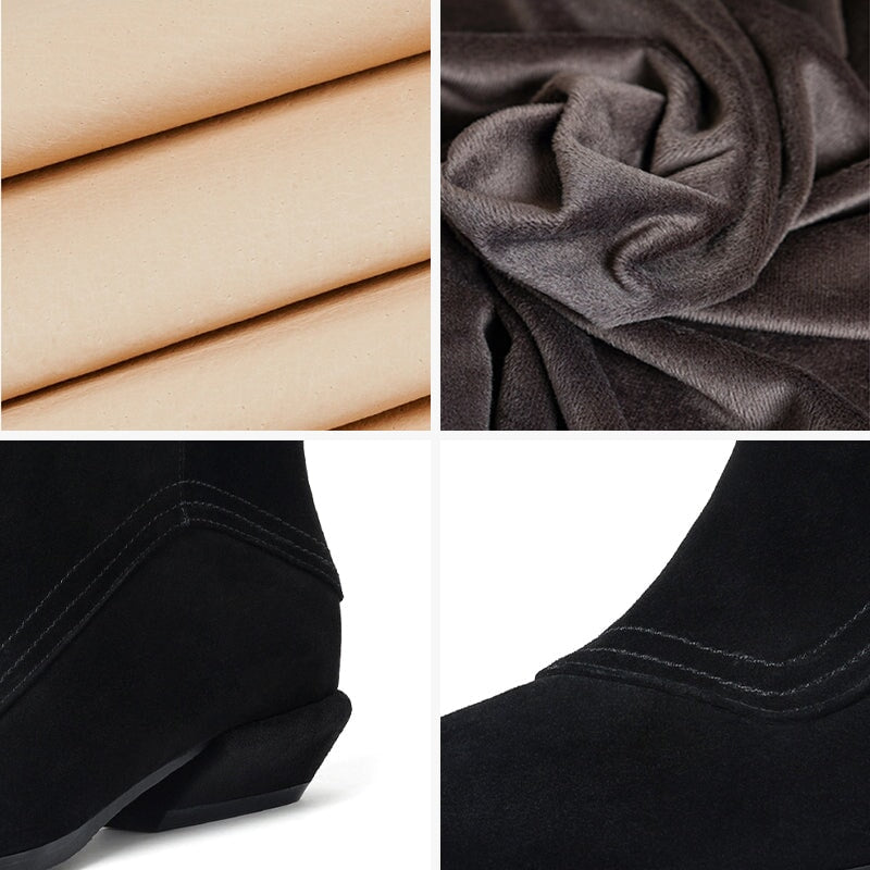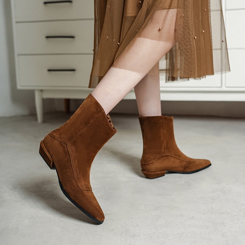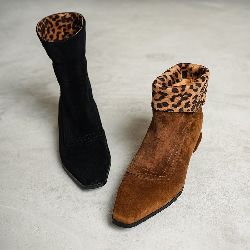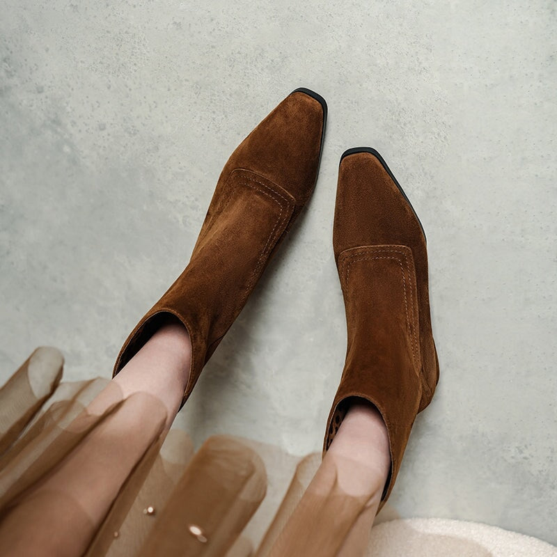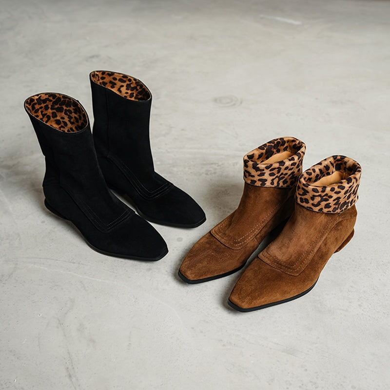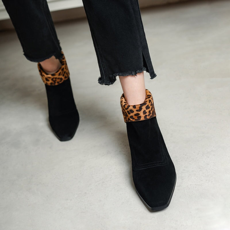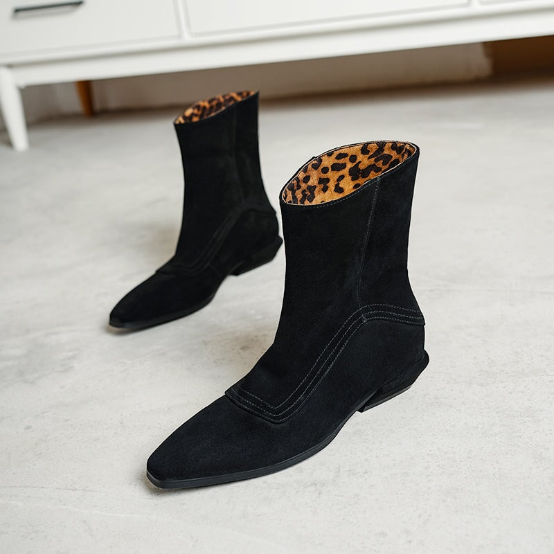 패션 스타일 스퀘어 발가락 클래식 디자인, 고른 양가죽 부드러움, 편안함 및 스탠드 마모. 100% 소가죽 깔창, 부드럽고 통기성 및 흡습성.