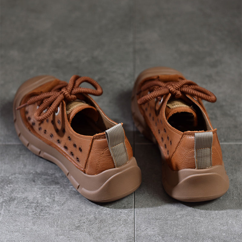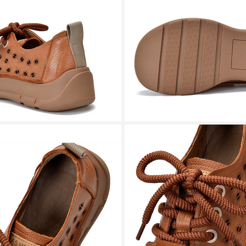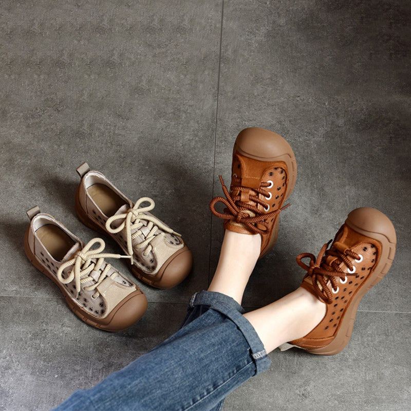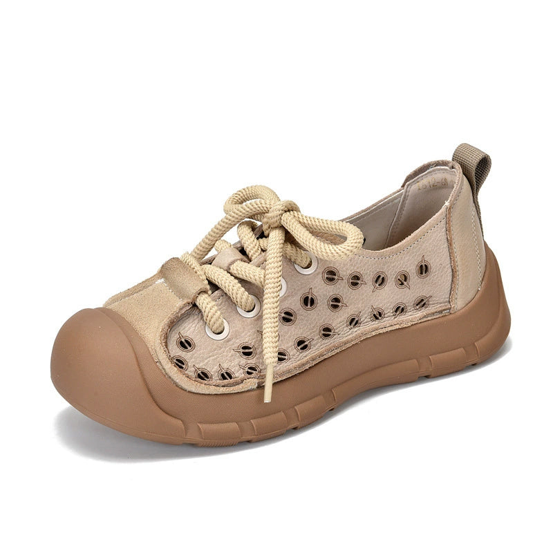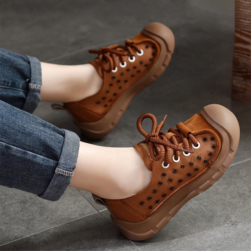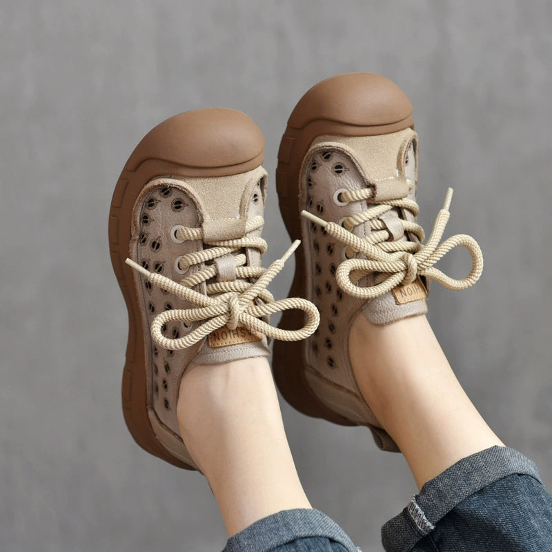 여성용 가죽 로우탑 여행용 천공 플랫폼 스니커즈(베이지/퍼플/그린/오렌지 컬러)