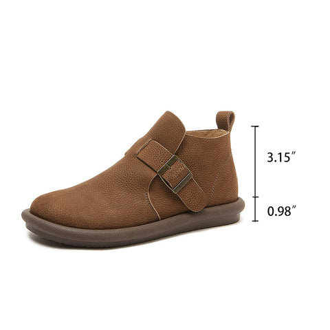 여성용 앵클 부츠 가죽 둥근 발가락 레트로 플랫 슈즈 캐쥬얼 버클 부츠 카키/커피