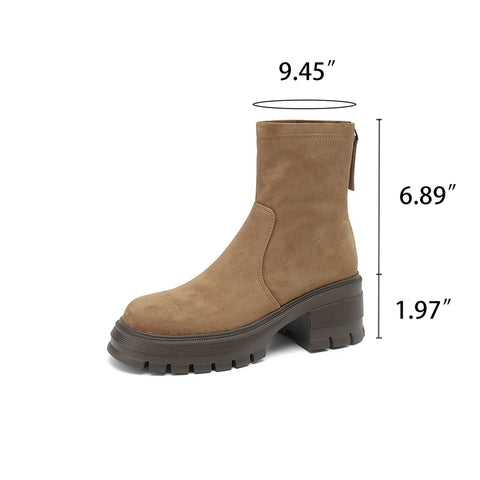 여성용 50mm 플랫폼 스웨이드 가죽 앵클 부츠 카키/블랙 색상의 짧은 봉제 안감 뒷면 지퍼