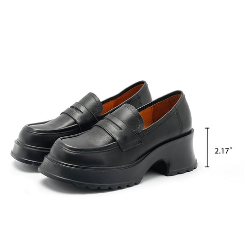 여성용 핸드메이드 가죽 플랫폼 페니 로퍼(블랙/화이트/브라운)
