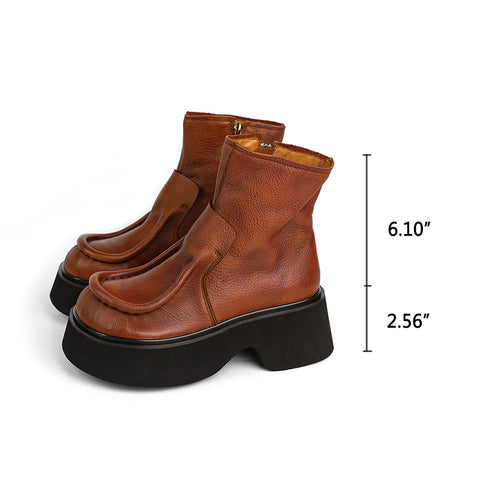 여성 핸드메이드 65mm 플랫폼 레트로 가죽 앵클 부츠 사이드 지퍼 블랙/브라운