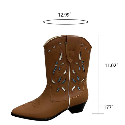 여성용 웨스턴 부츠 블록 힐 컷아웃 카우보이 부츠 모두 천연 가죽