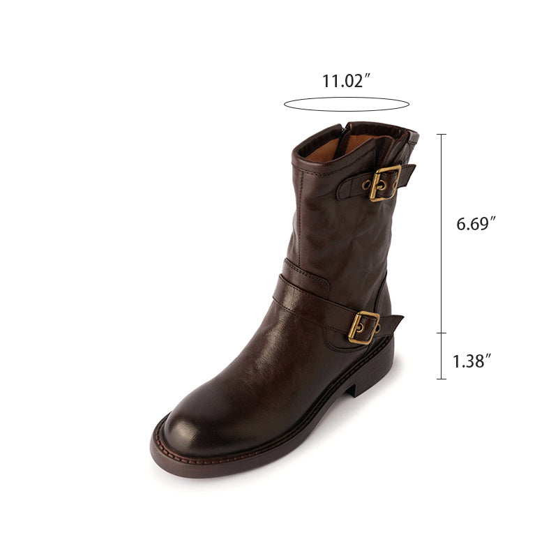 35mm Block Heel Boots Classic Women's Leather Chelsea Boots Double Buckles Detail in Black/Brown