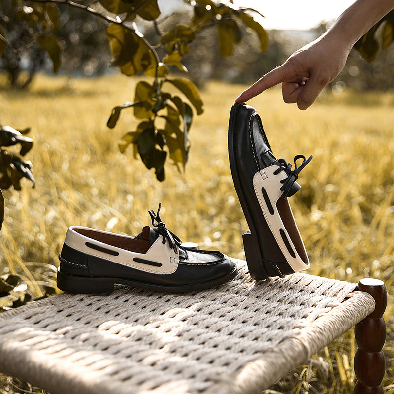 Designed with a chic contrast-color finish and crafted from premium vegetable-tanned cowhide, these loafers are soft, breathable, and durable. The round toe and lace-up design offer a classic, designer-inspired look that pairs easily with casual or smart outfits. Featuring a high-elastic rubber sole that’s soft, non-slip, and wear-resistant, each pair is handmade by experienced craftsmen made to last for years while keeping your style effortlessly fashionable. Step into timeless British elegance with these handmade leather boat shoes.