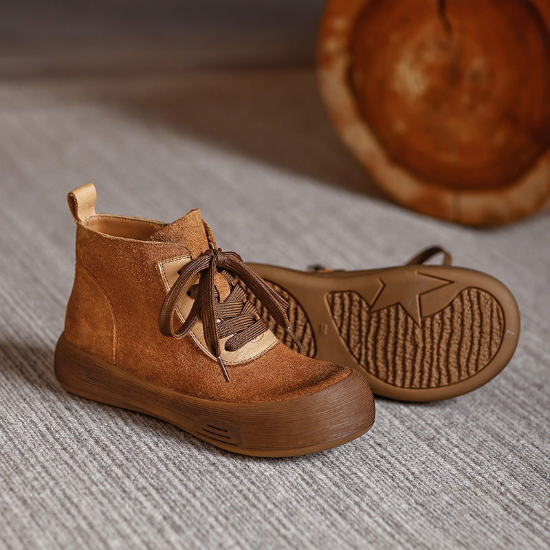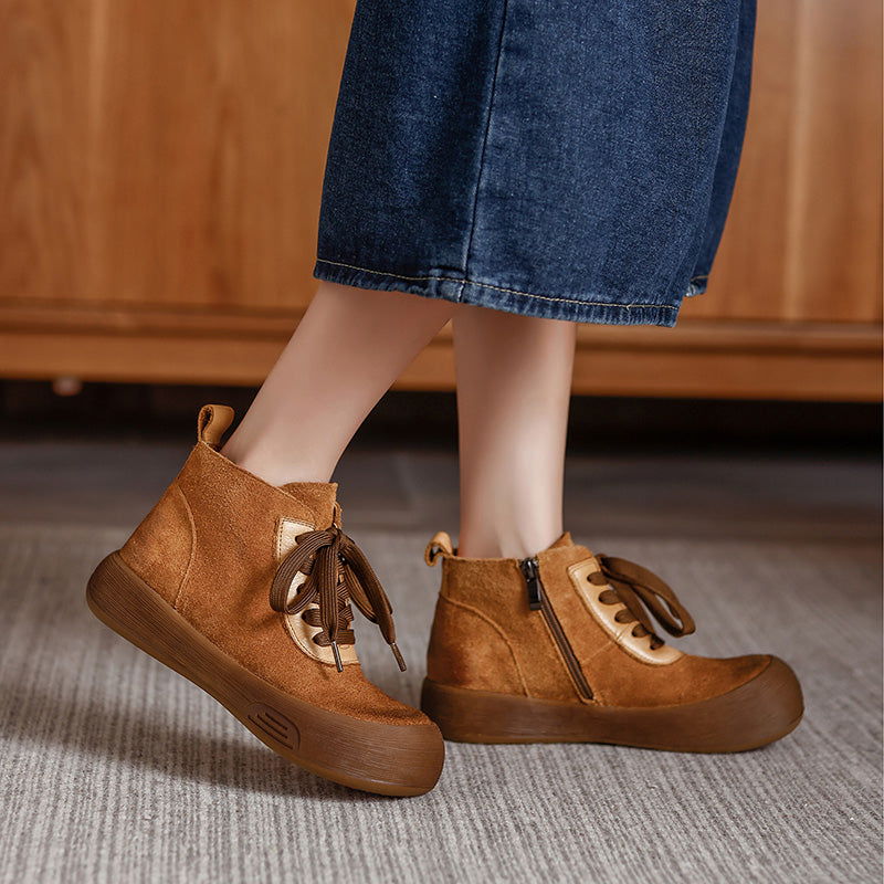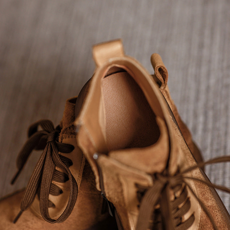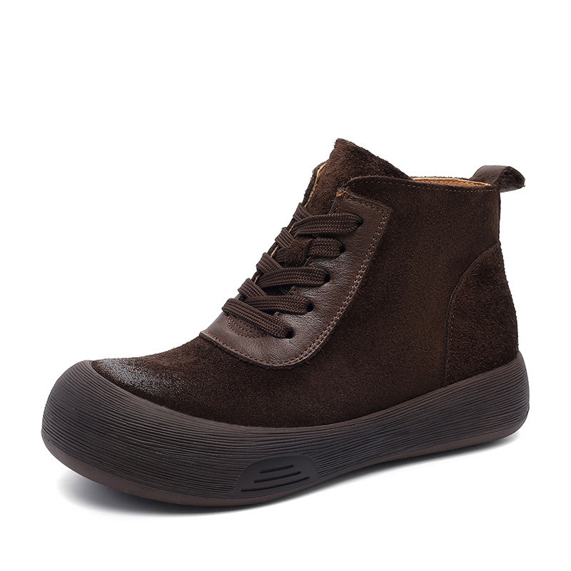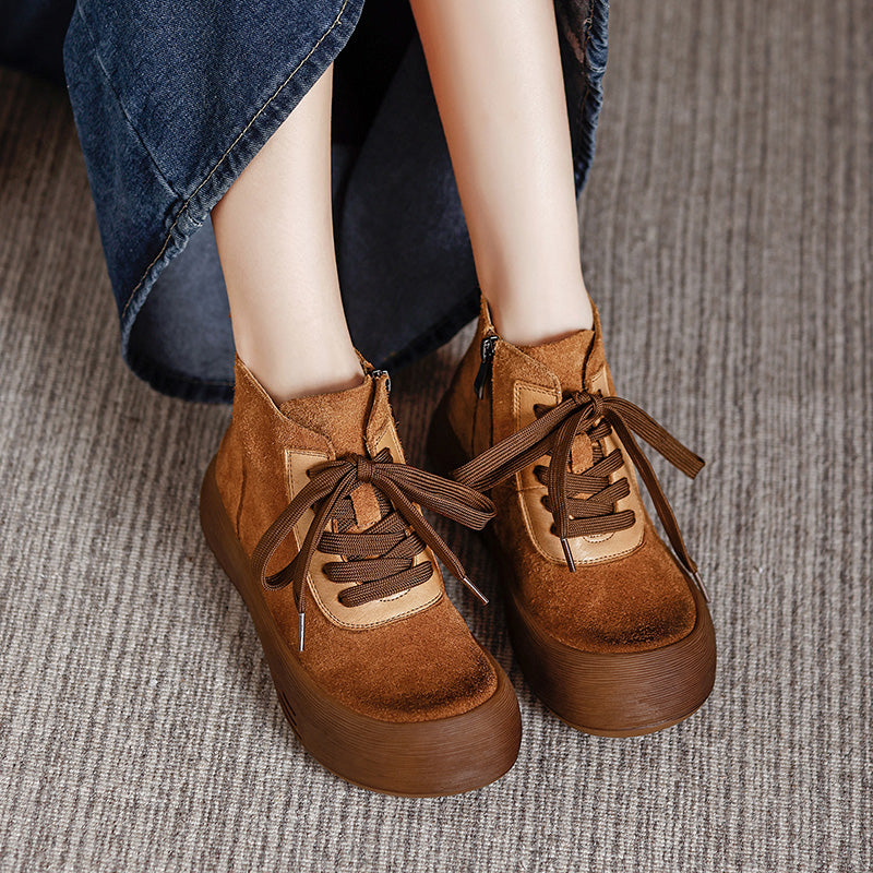 Crafted from premium full-grain cow leather, these Handmade Platform Boots feature a round toe, lace-up front, and convenient side zipper. The soft rubber sole provides excellent elasticity, cushioning, and non-slip grip. Combining comfort and casual elegance, they’re perfect for daily wear with a touch of handcrafted charm.