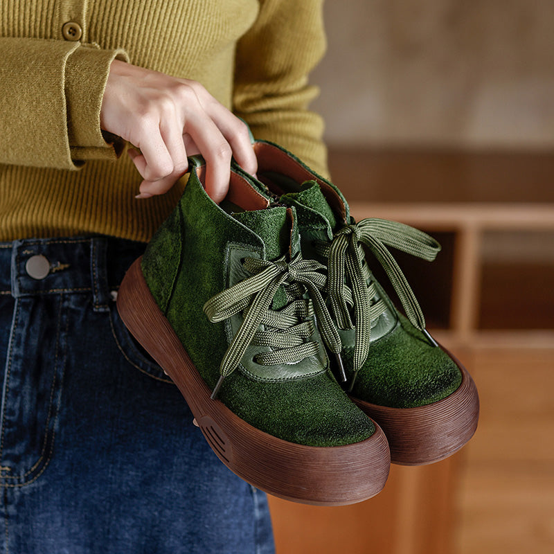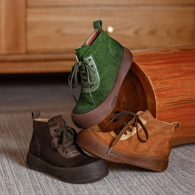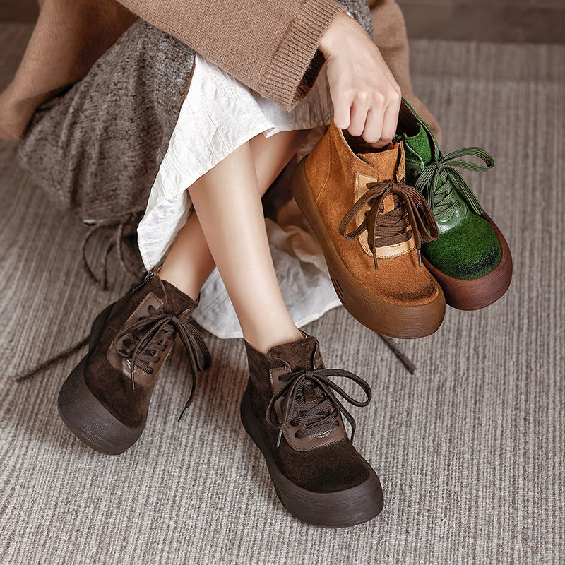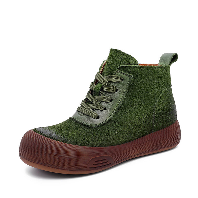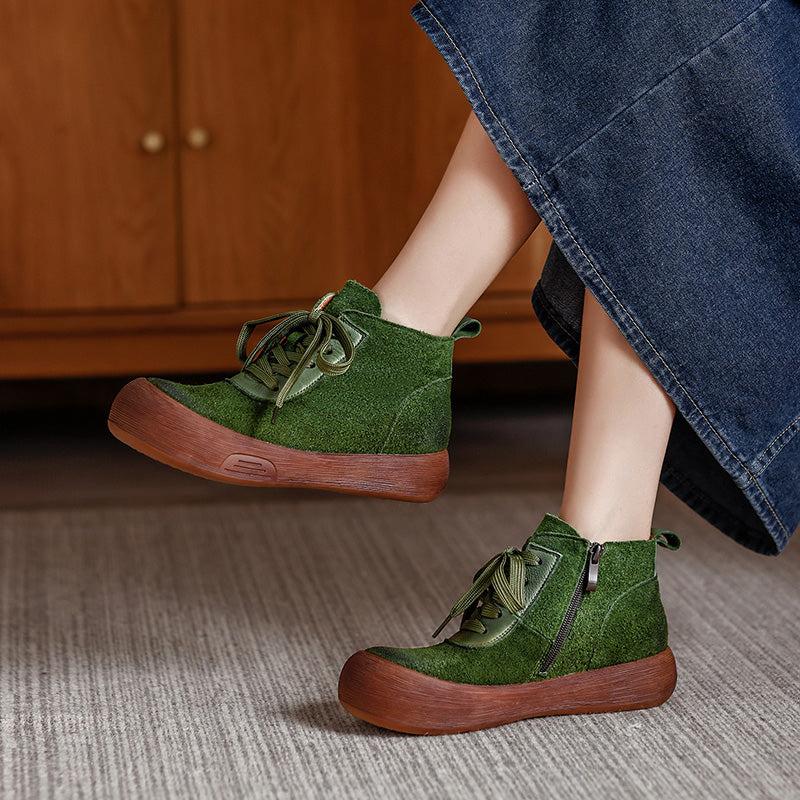Casual Handmade Leather Platform Boots for Women with Side Zip in Caramel/Coffee/Green