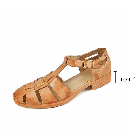 Fine Leather Upper with smooth texture, Comfortable Rubber Sole, Convenient Buckle Design, Hand-Cut, Retro Style.