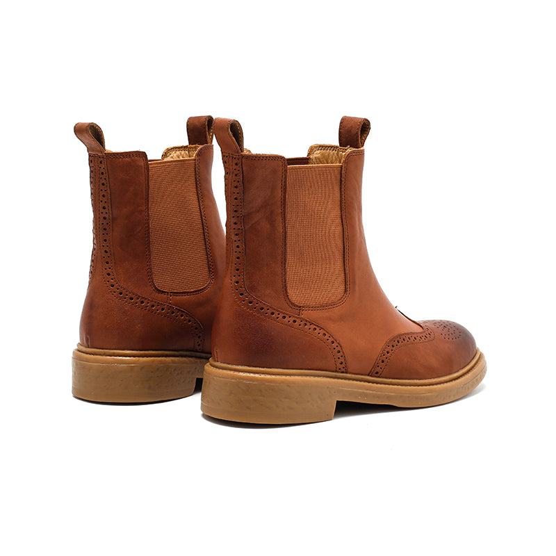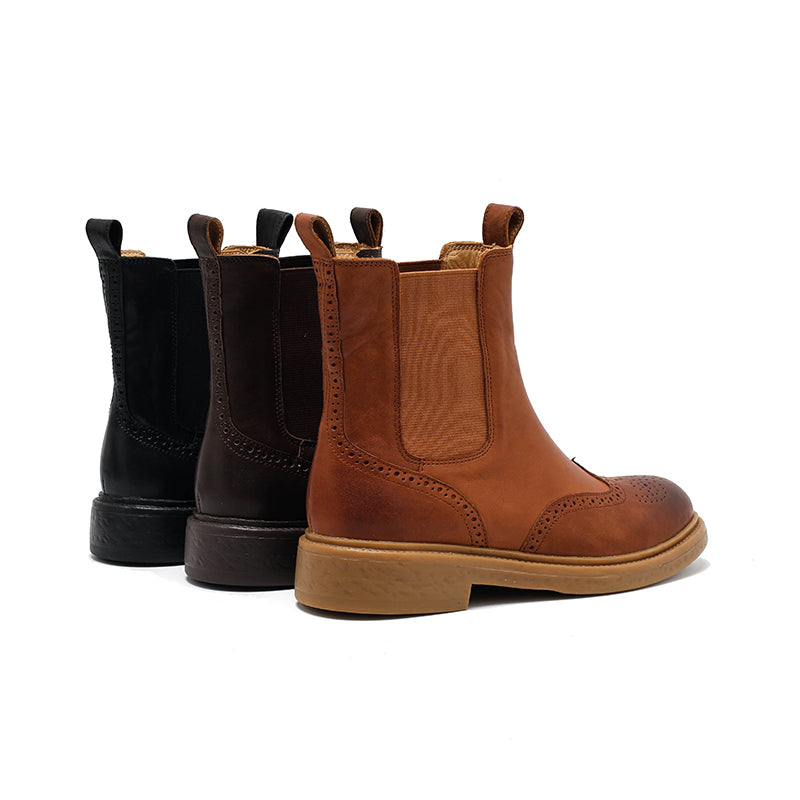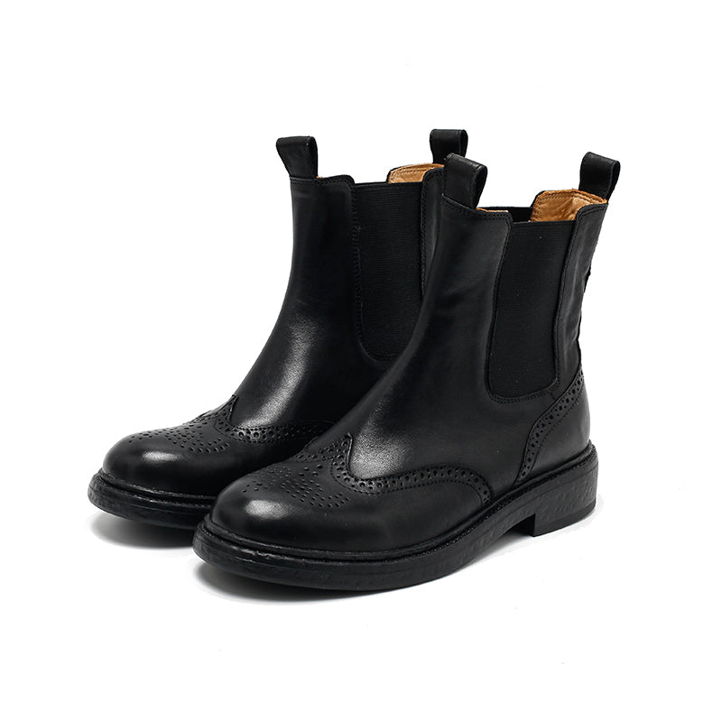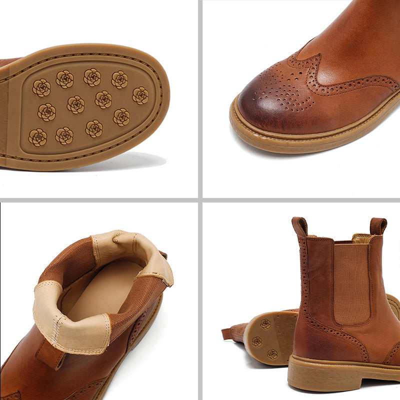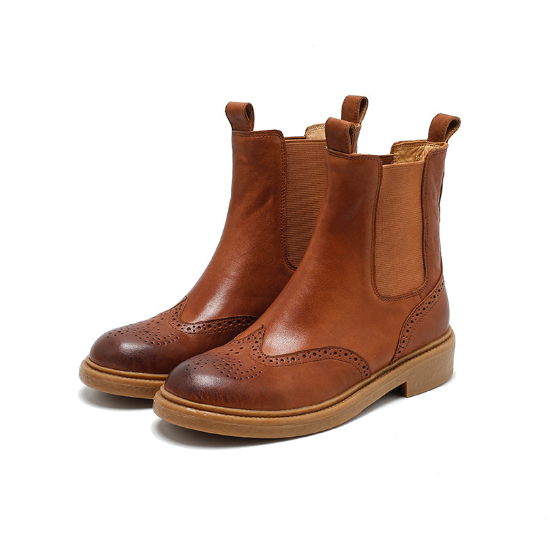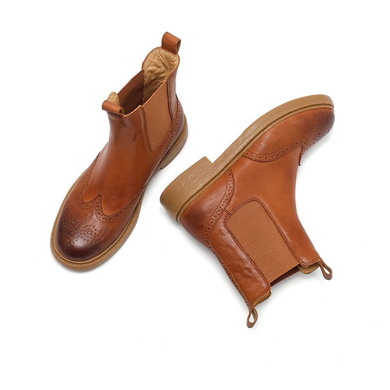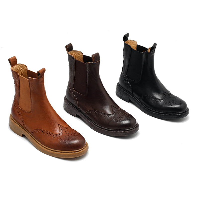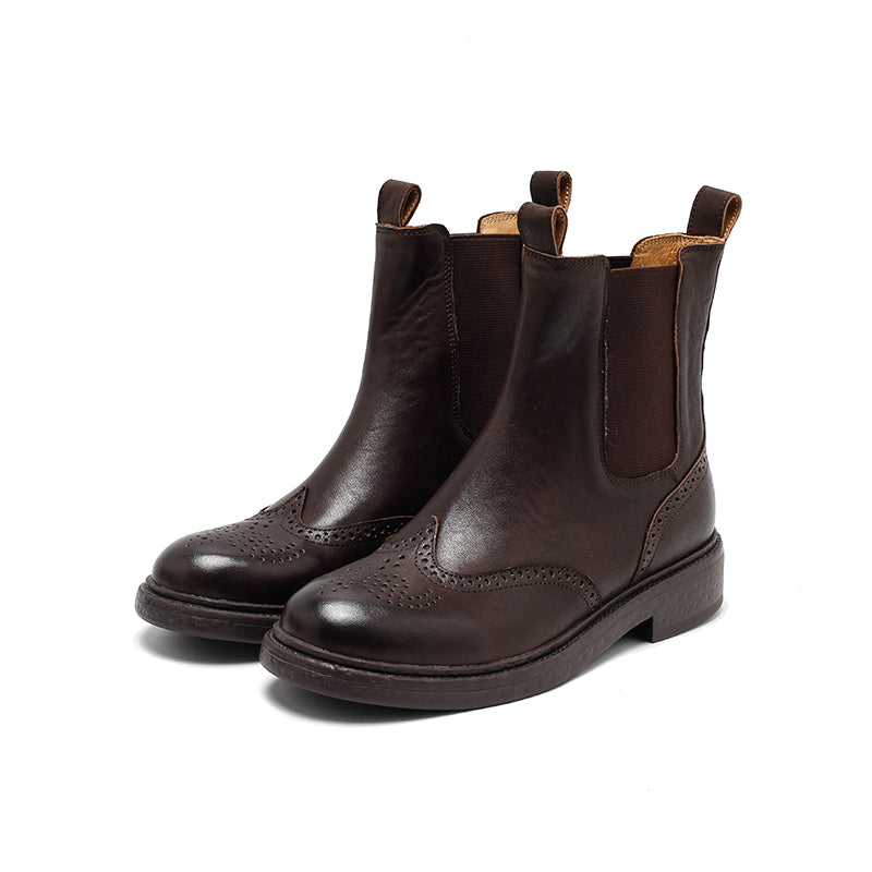 Dwarves Handmade Vintage Brogue Chelsea Boots for Women Leather Short Boots in Back/Coffee/Brown