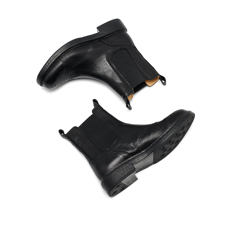 Step into timeless style with these Handmade Vintage Brogue Chelsea Boots by Dwarves, crafted from premium first-layer bubble cow leather. Designed with a sleek round toe, retro wingtip detail and a stable 33mm block heel, these boots blend vintage charm with everyday comfort. You can choose between short plush lining for winter warmth or smooth leather lining for breathable all-season wear, making them perfect year-round. Each pair is crafted by skilled shoemakers, ensuring long-lasting durability, comfort.