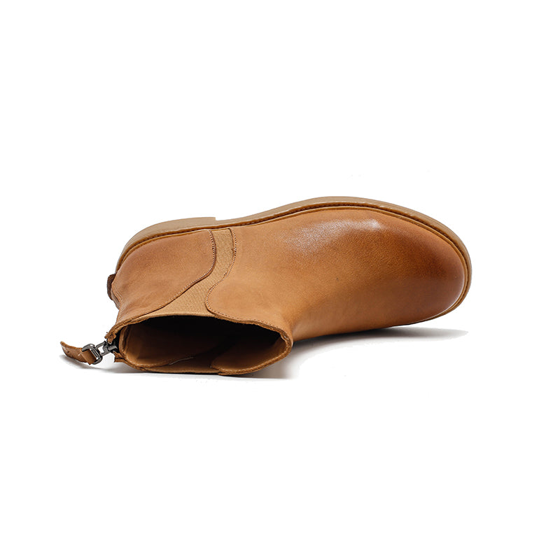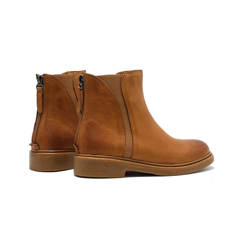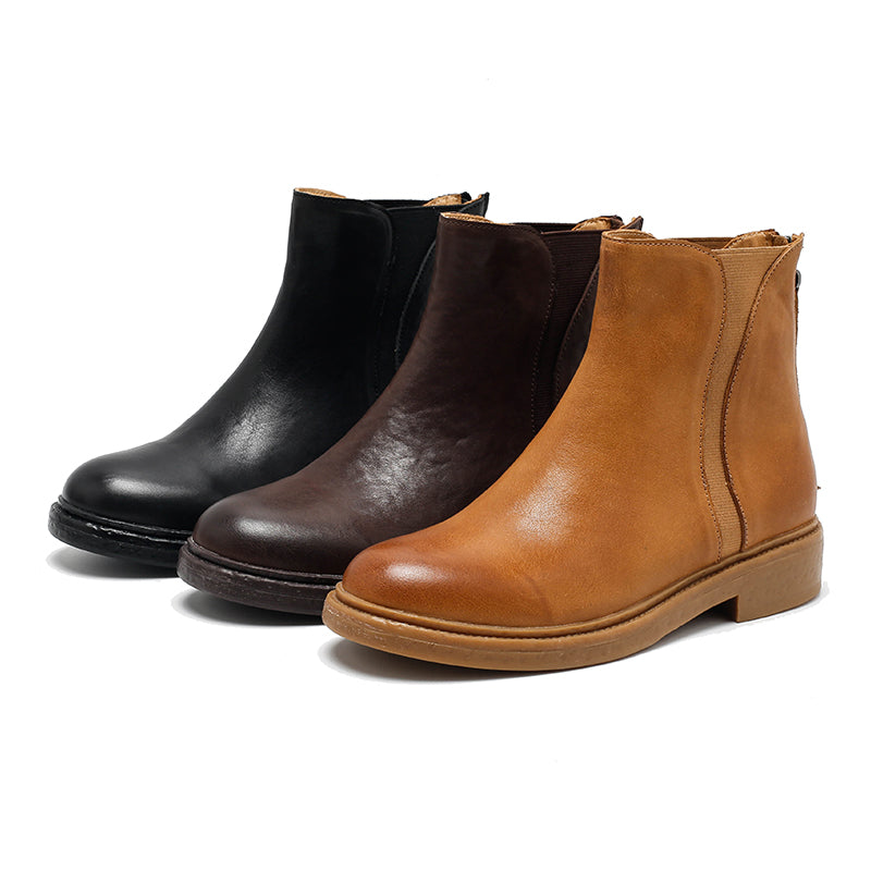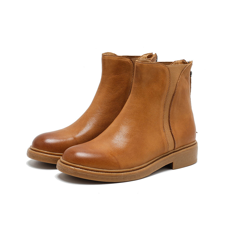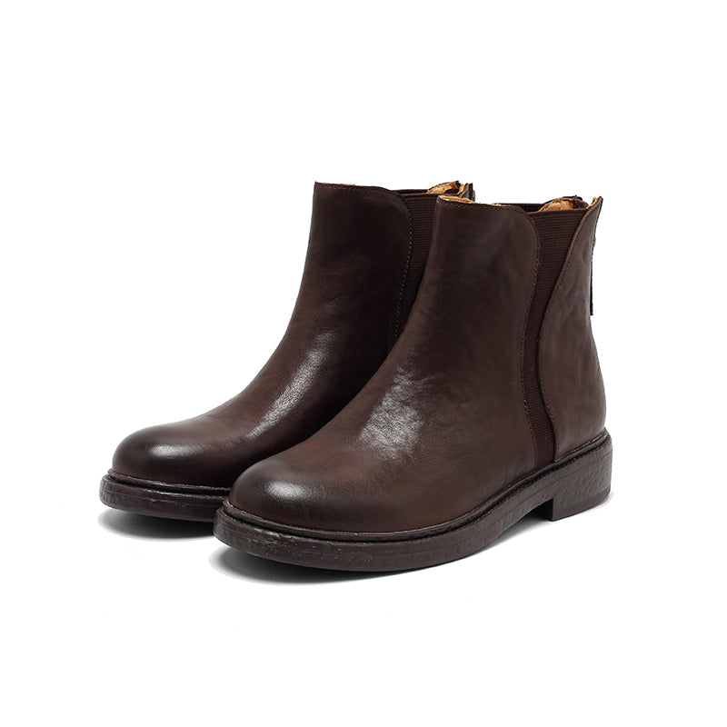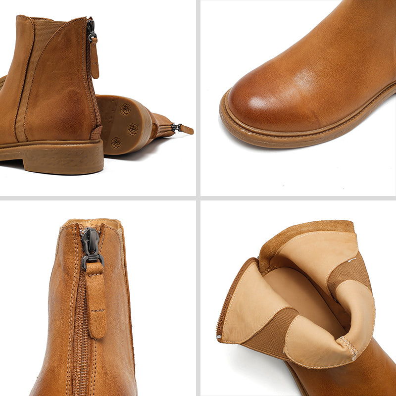 Dwarves Handmade Vintage Chelsea Boots Leather Short Boots with Back Zip in Back/Coffee/Dark Apricot