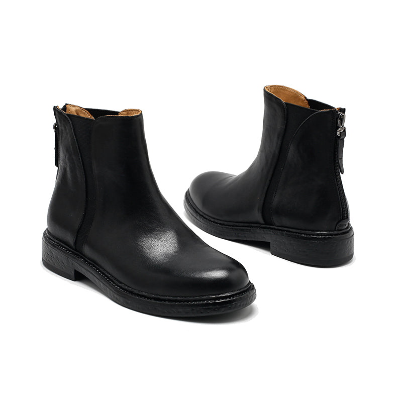 Step into timeless style with these Handmade Vintage Chelsea Boots by Dwarves, crafted from premium top-layer vegetable tanned cow leather. Designed with a sleek round toe, convenient back zipper, and a stable 33mm block heel, these boots blend vintage charm with everyday comfort. You can choose between short plush lining for winter warmth or smooth leather lining for breathable all-season wear, making them perfect year-round. Each pair is crafted by skilled shoemakers, ensuring long-lasting durability, comfort.